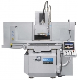 SGE-2NA Series features a 2-axis NC (Down Feed and Cross Feed) control that can perform precise Plunge grinding, Slot grinding and Step grinding. The new control features a user friendly touch screen with color graphics. The 2- axis NC control utilizes a conversational type instruction that prompts the operators to put in all necessary data. Once the data is entered, the graphics will show the new position of the grinding wheel in the Z and Y axis direction. Both down feed and the cross feed motions are driven by AC servo motors and precision ballscrews.